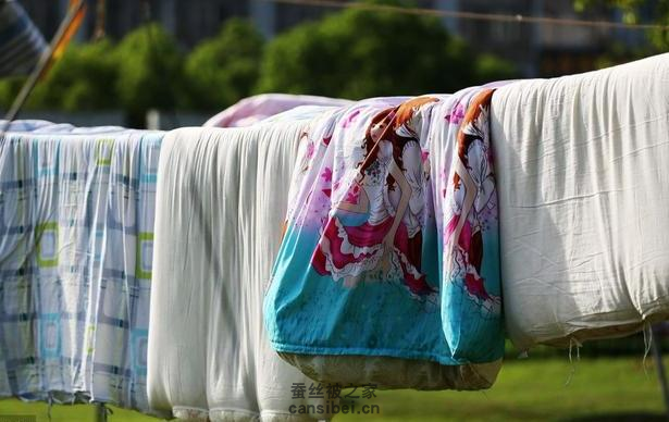 回到蚕丝被晒的问题上,我们在晒被子的时候,记得用个竹竿轻轻拍打一下被子,这样蚕丝被会更加的逢松。