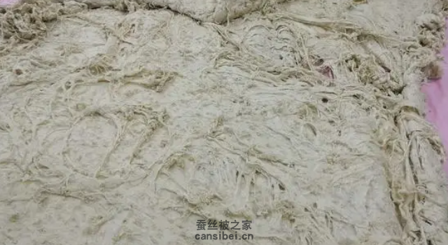 蠶絲被的板結:蠶絲被的板結是指,蠶絲表層有一層膠水,我們稱為絲膠,蠶絲被用一段時間後,蠶絲相互之間粘連在一起,這個時候,就不能像新蠶絲一樣,拉製成各種形狀了。